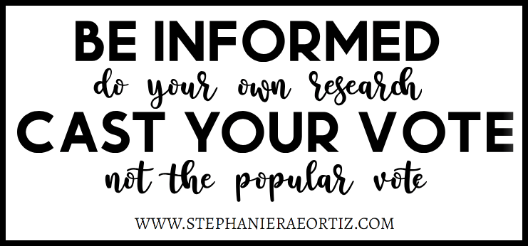 I believe it’s important for us in such a time as this to make an informed decision. We should each feel confident and sound about our vote! It’s hard for me to find the true facts on-line these days because it seems like everyone has their own opinion and agenda but I think by balancing between a few sources we’ll be able to find the facts.